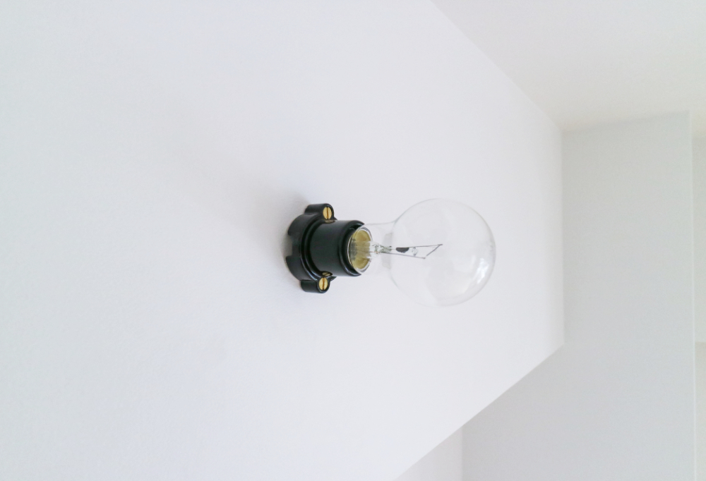 寝室の壁付照明。耳付き黒レセップ+真鍮ビス ※