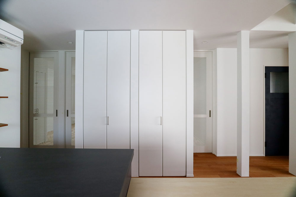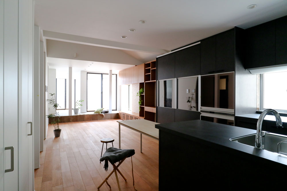 リビングからキッチンを望む