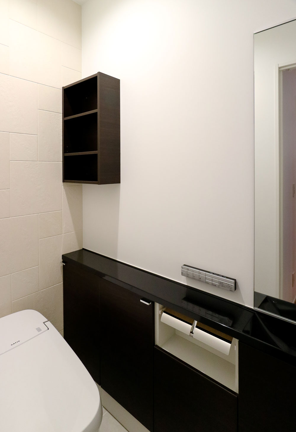 コンロ脇にニッチを造りました。調味料やキッチンツールの置き場所となります